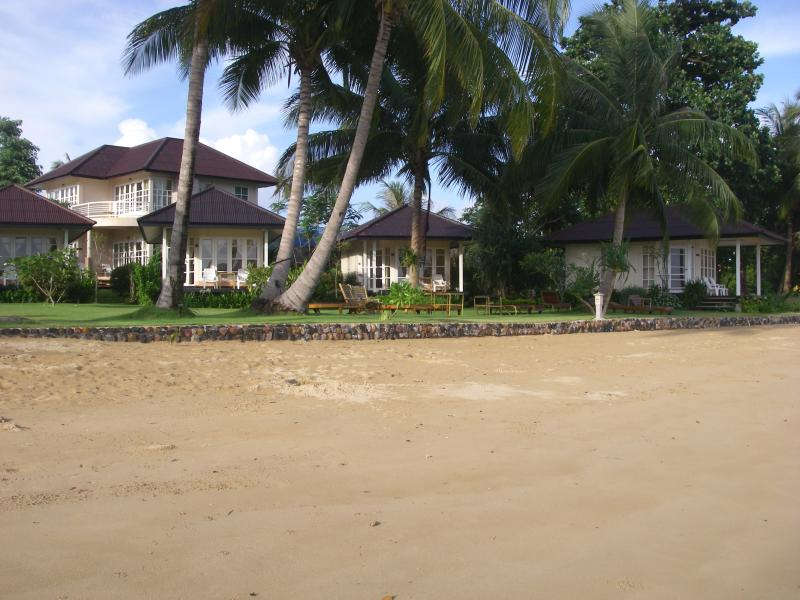The Panorama Beach Bungalows are probably the most popular of all types of accomoodations that we have on offer in the Makathanee Resort on Koh Mak, due to their A1 location. These 8 lovely bungalows are all facing the sea and stand directly on the beautiful Ao Khao Beach on Koh Mak. These comfortable, cozy panorama bungalows offer a nearly 180 degrees view of the beach and sea, even from the extra comfortable beds. Beach Bungalows number 7 and 8 are joined by a double sized terrace and interconnecting doors, especially great for families with older children or two couples that travel together and like to spend their evening with a beer or nice cocktail and a friendly game or good converstation, while being only a few steps removed from the Makathanee restaurant and the cocktail bar.