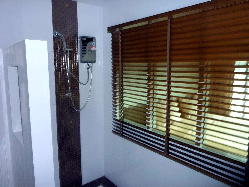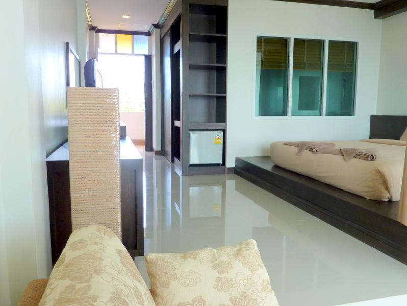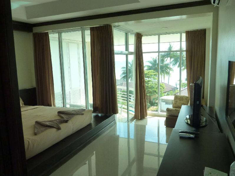 The Deluxe Rooms were just completed late 2009 and no costs were spared in doing so. Whereas the more simple Pool / Sea View rooms in the buildings on the far ends of the swimming pool where considered as a bit too basic by some, at least for a Beach Resort on Koh Mak island, these new Deluxe Rooms have so far only received the best grades in nearly everyone's travel journal. The Makathanee Deluxe rooms all have spacious modern bahtrooms with a sexy window view of the bedroom and the sea behind it. Of course, vitrage on the outside windows and blinds on the bathroom windows have been installed for our more shy guests. We have chosen the most comfortable, yet durable matresses we could find and placed those on a wooden eleveated floor, facing the large wide screen TV's and a properly sized make up desk with huge mirror. A dimmer on the bed's headboard ensures that the room will always be exactly as romantic as you would like it to be. The minibar / fridge is within easy reach of the bed, just around the corner from the spacious closet / magic bathroom door.