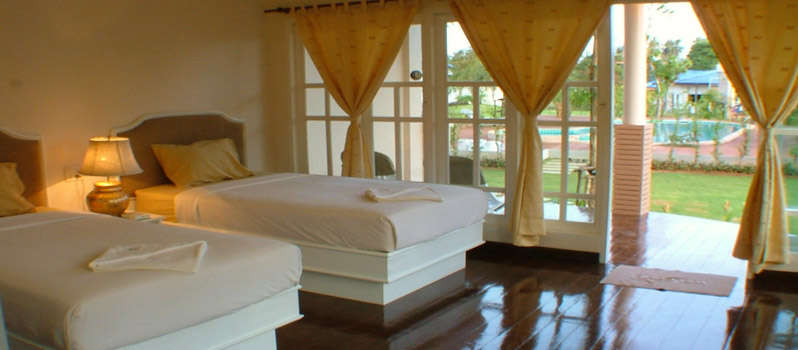 The Pool View Ground floor (G) rooms and top floor Sea & Pool View rooms (B) at the Makathanee Resort on Ko Mak island are ideal for families with one child or couples that prefer to sleep in twin beds. These Poolside buildings both have two ground floor rooms and two top floor Sea / Pool view rooms and are surrounded by beautifully landscaped garden and golf course quality gras carpets.